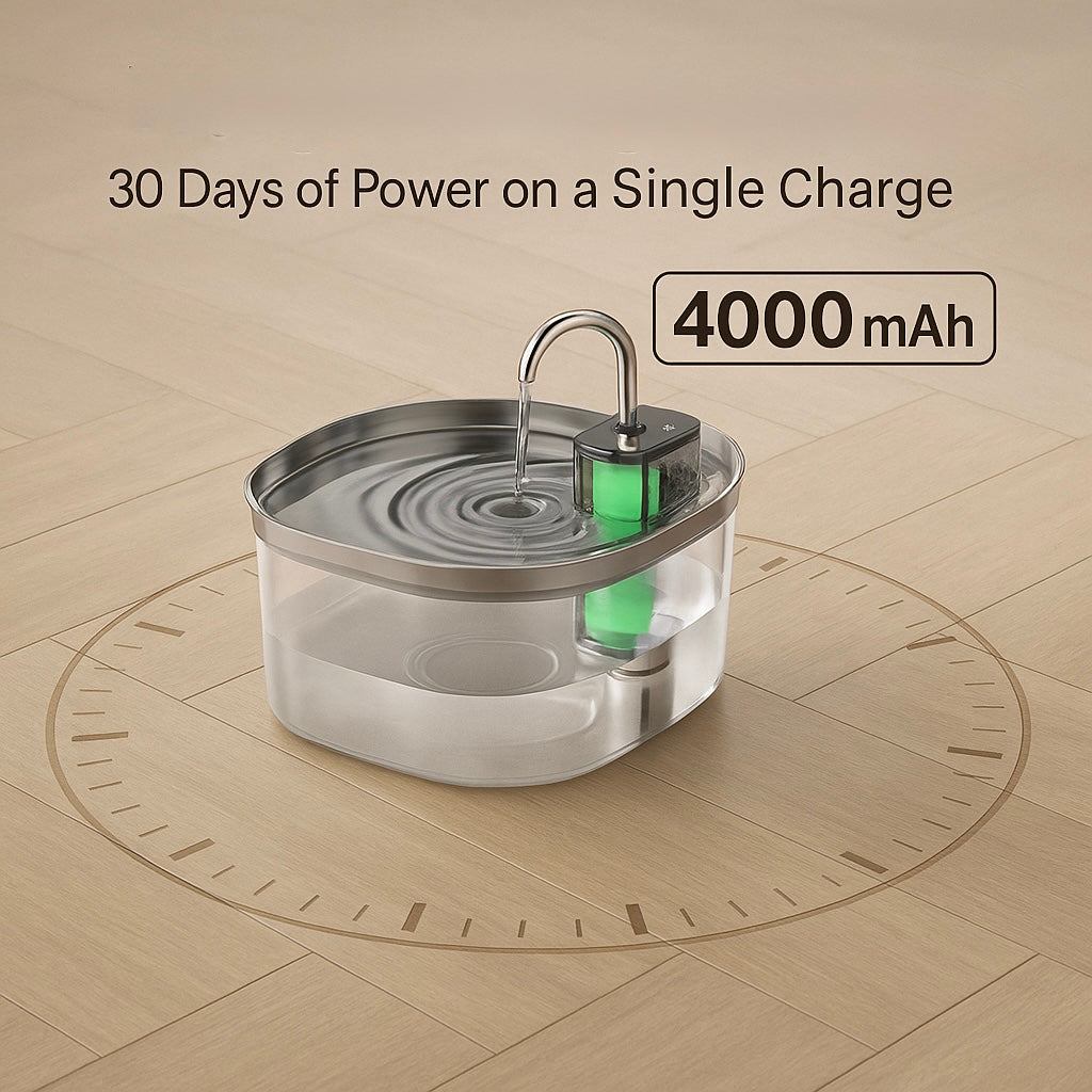 With its 4000mAh battery, MizuPaw runs for up to 30 days on one full charge, Keeping your cat’s water flowing, fresh, and filtered even when you’re away.