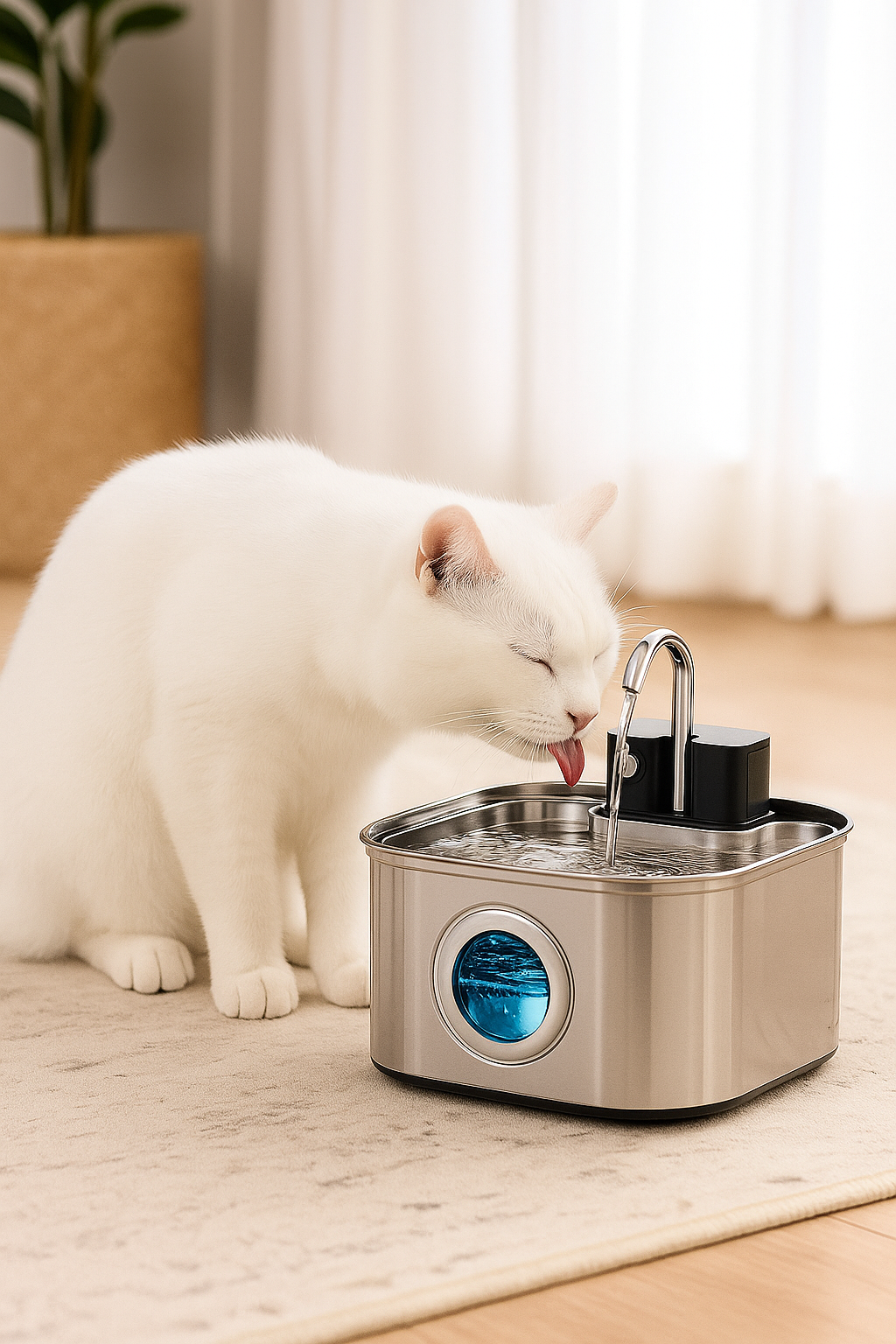 The brushed stainless design blends perfectly with my living room, and my two cats drink from it constantly. It stays clean longer, I only refill it once a week, and the motor is whisper-quiet. You can tell it’s built to last. I even bought one for my sister’s cats too.