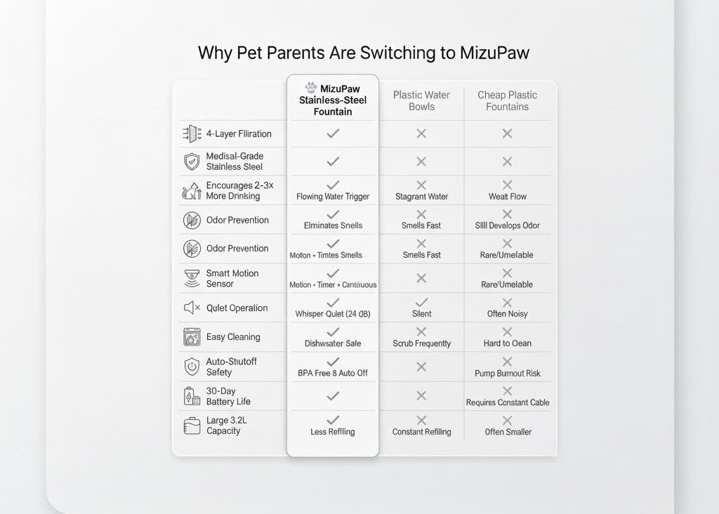 Every detail of Mizupet was engineered to solve the hidden problems that make cats avoid ordinary bowls — and to give you peace of mind, every single day.
